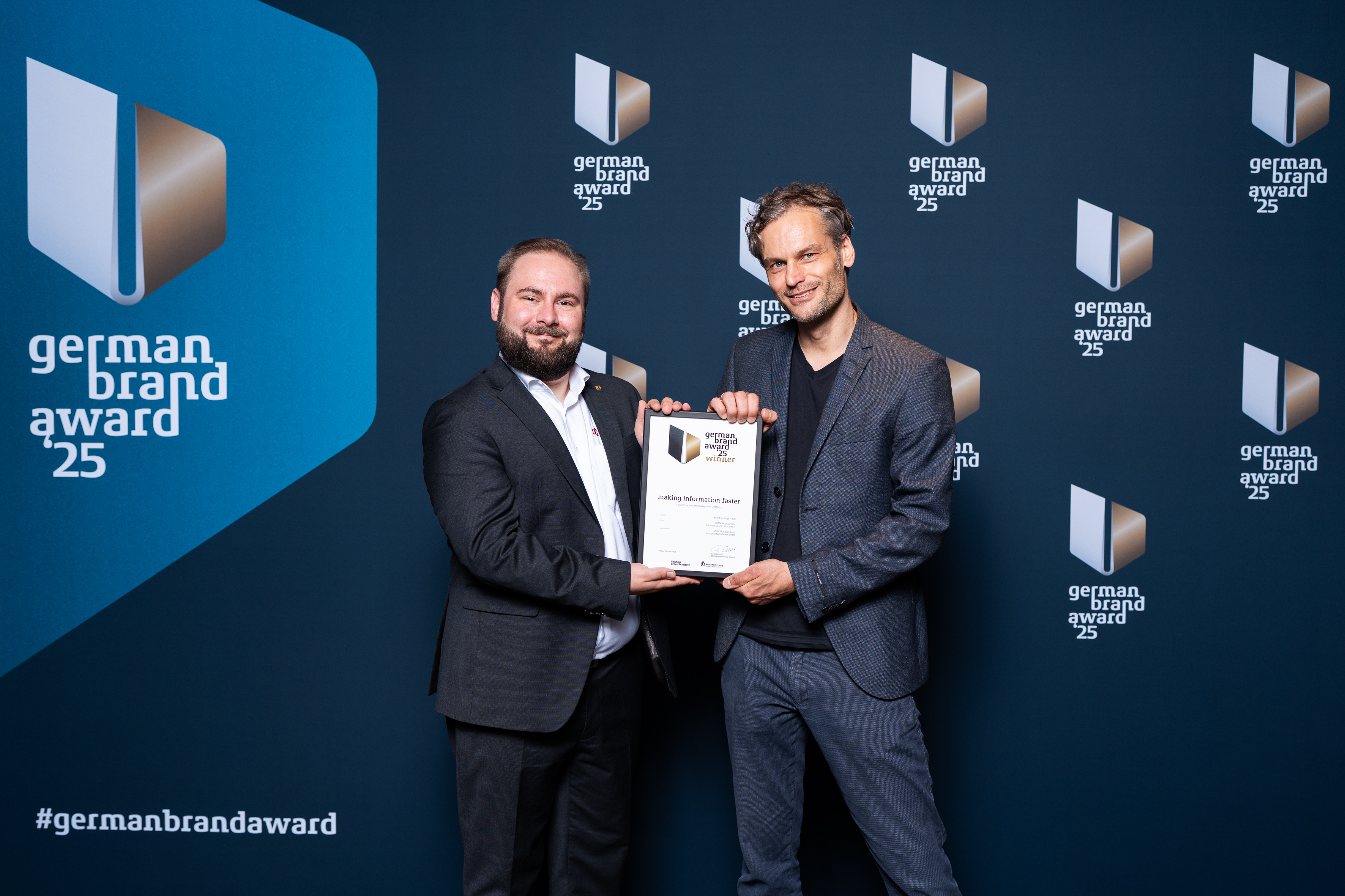 ,,Wir sind stolz, Gewinner des German Brand Award 2025 zu sein.'', erklärt Dietmar Nick, CEO von Kyocera Document Solutions Deutschland. ,,Vielen Dank an die Jury und den German Design Council für diese Auszeichnung. Mit unserem Leistungsversprechen ,making information faster' haben wir unserer Unternehmensgruppe einen einheitlichen Markenauftritt gegeben, der auch unsere Fachhandelspartner unterstützt. Unter dem gemeinsamen Markendach bieten wir innovative Lösungen an, die Informationsprozesse in Unternehmen und Behörden beschleunigen.''